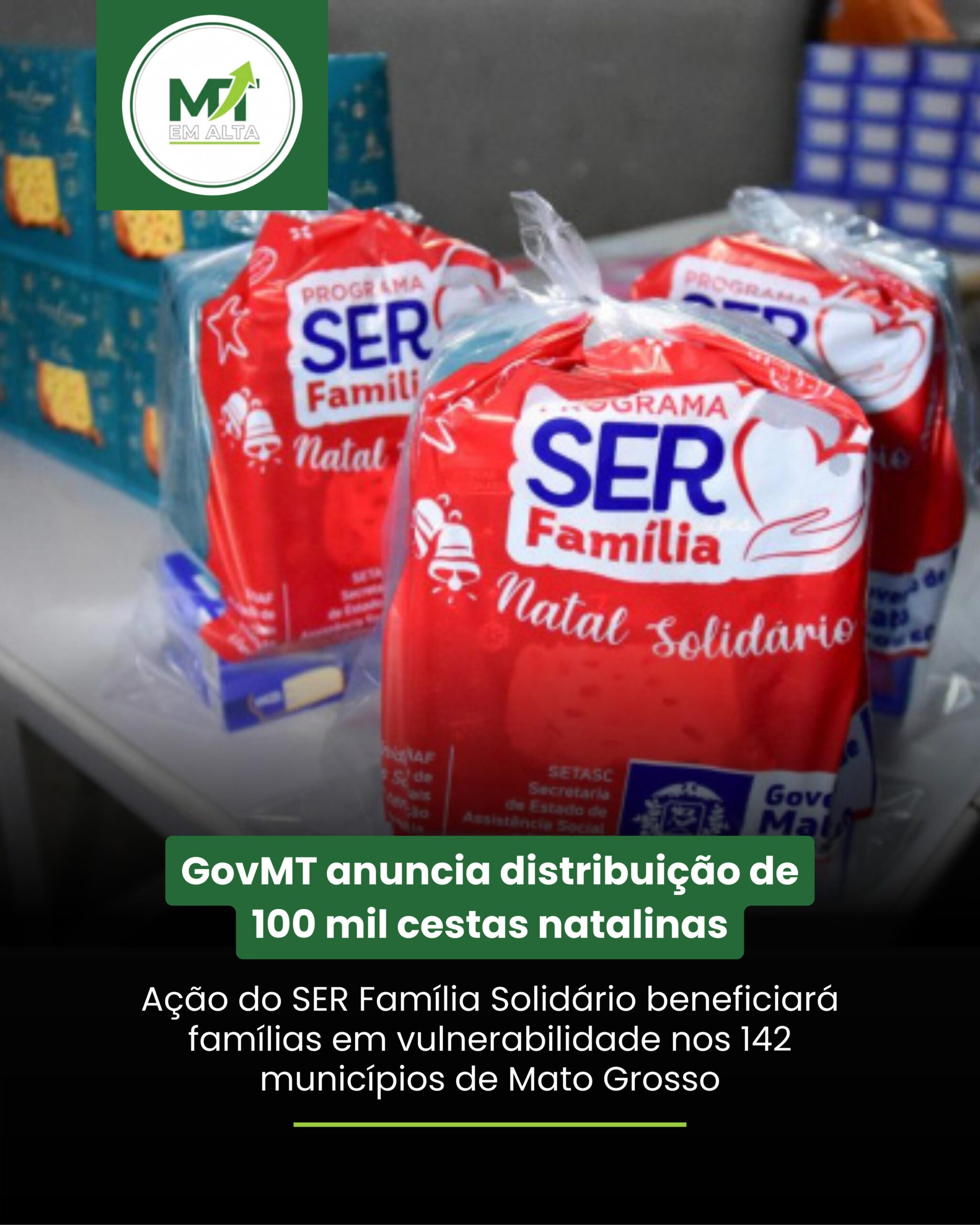 Governo de Mato Grosso anuncia distribuição de 100 mini cestas natalinas.