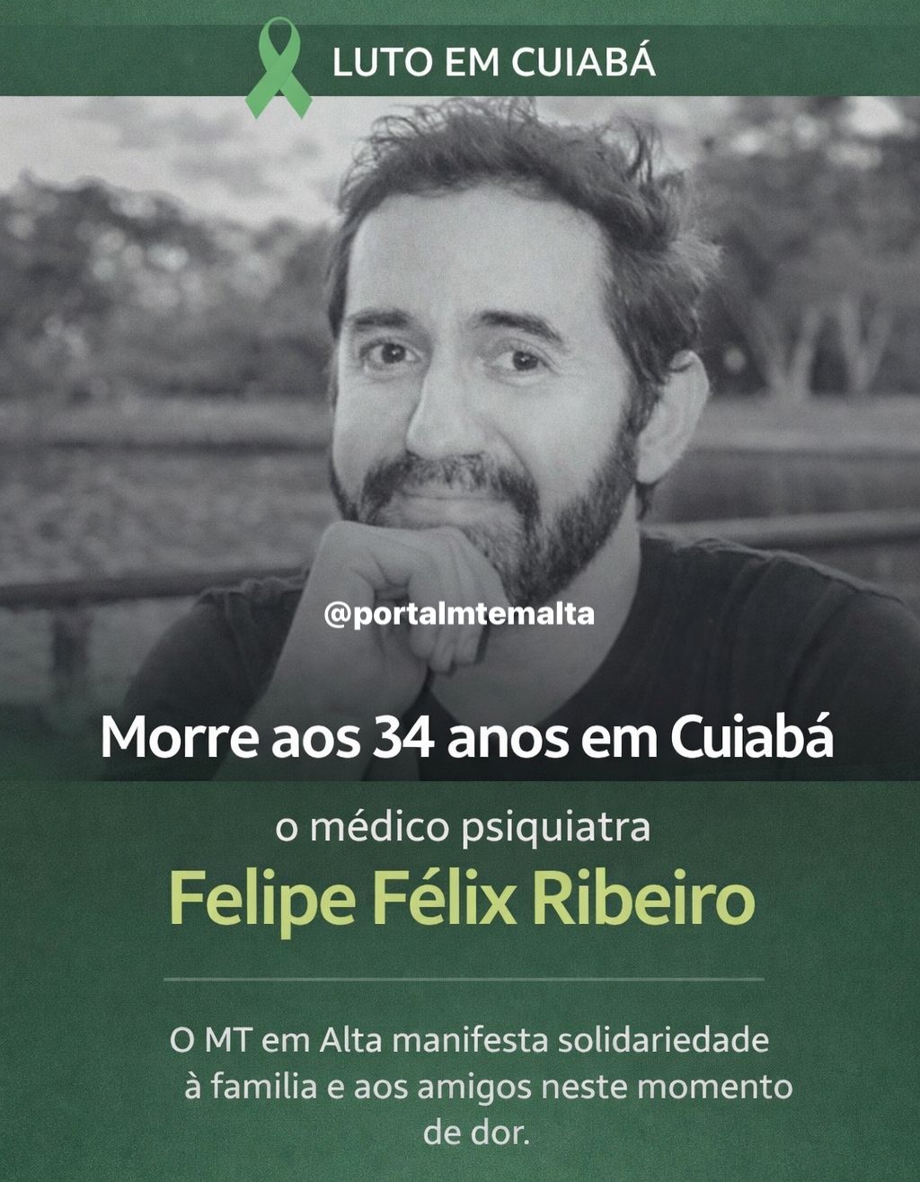 Médico psiquiatra Felipe Félix Ribeiro morre aos 34 anos em Cuiabá
