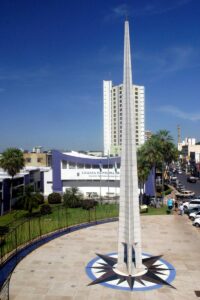 Localizado na Praça Pascoal Moreira Cabral, o monumento simboliza o ponto considerado centro geodésico da América do Sul. É um dos cartões-postais mais conhecidos da capital.